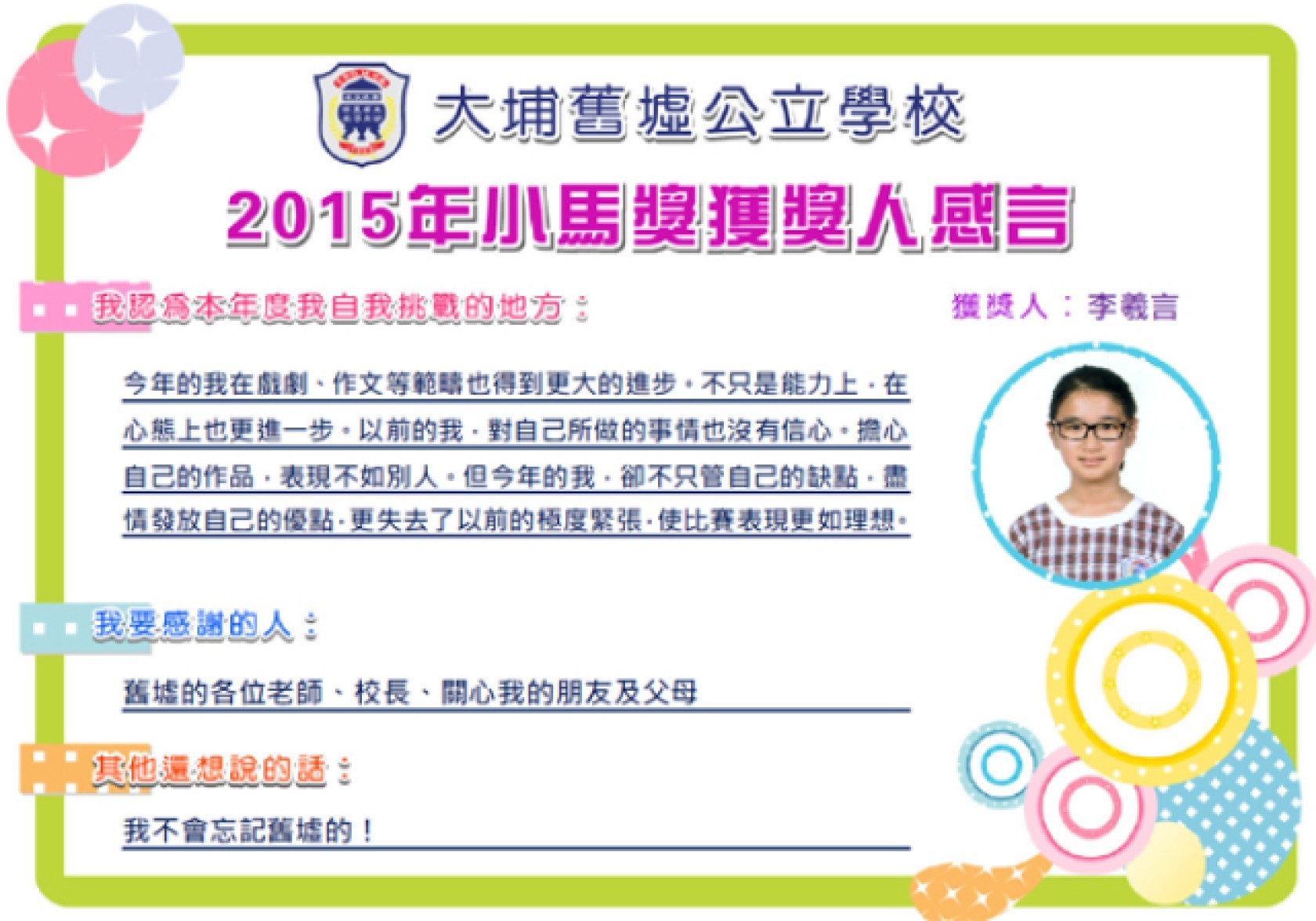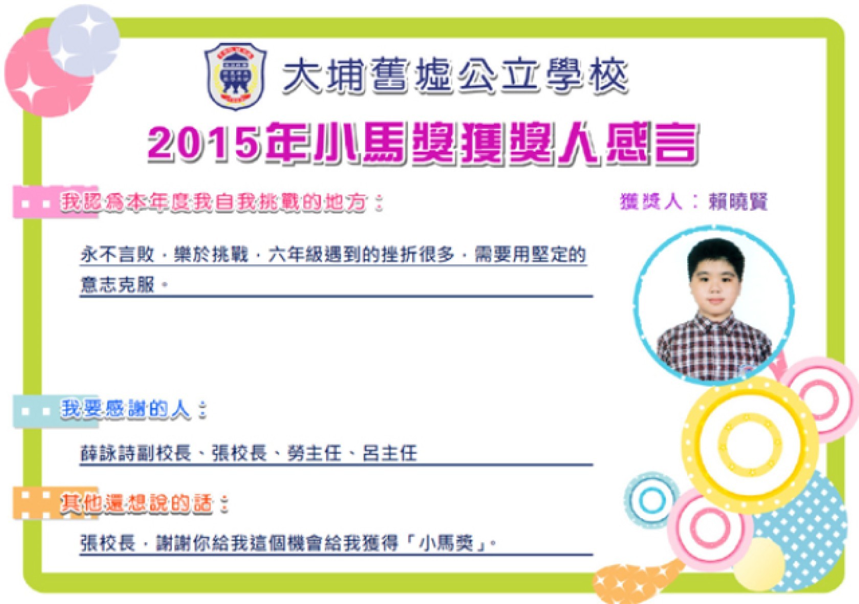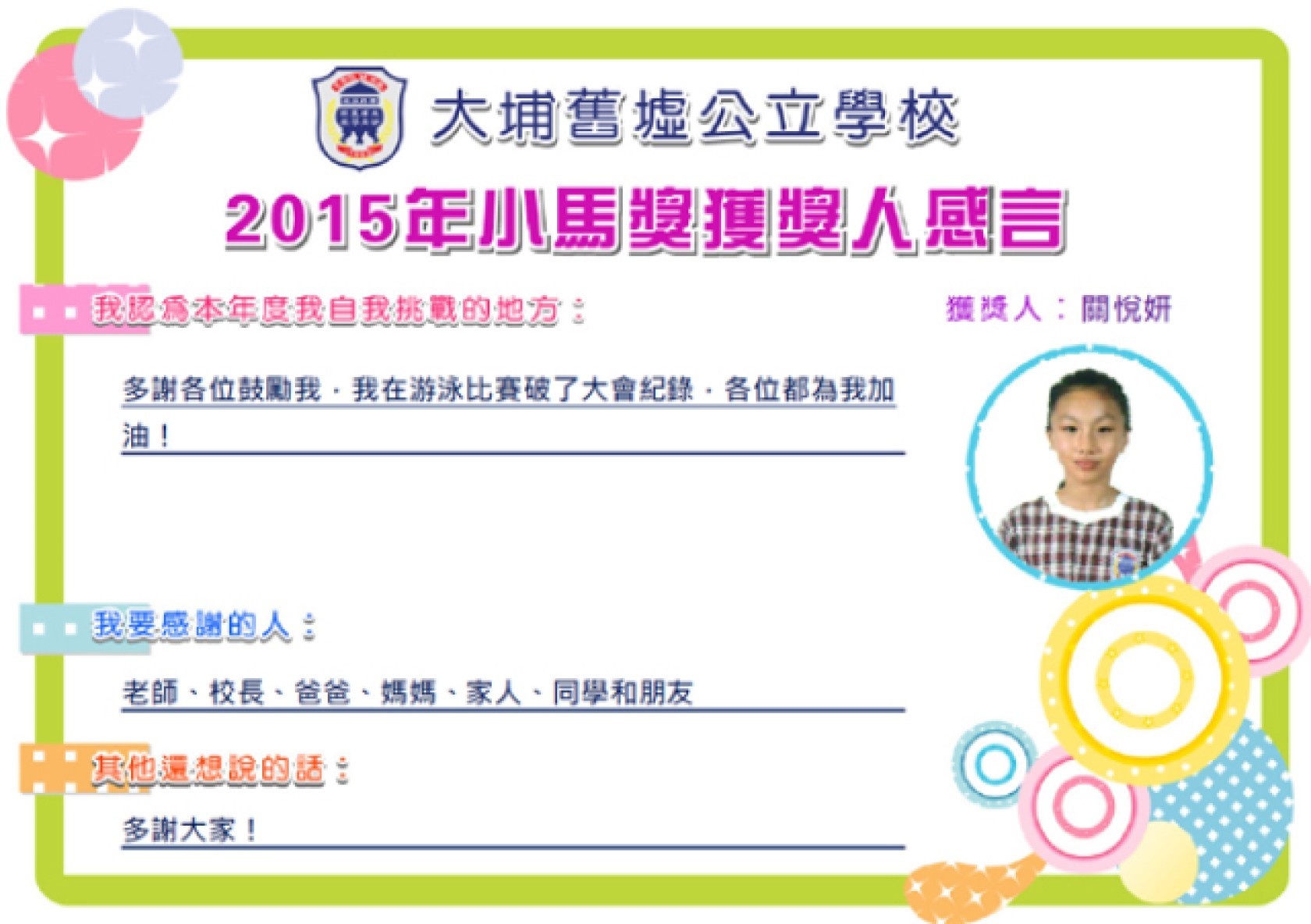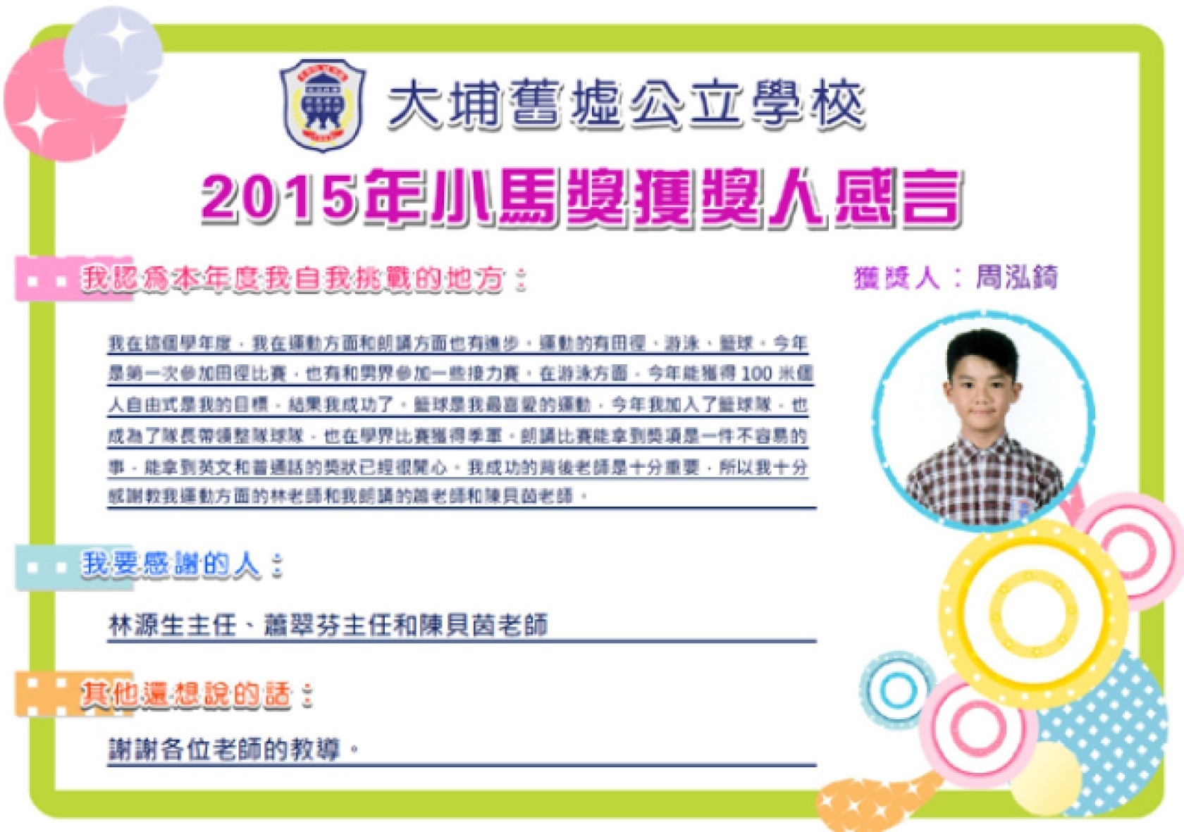 校內獲獎紀錄
